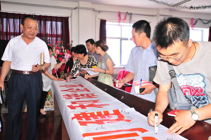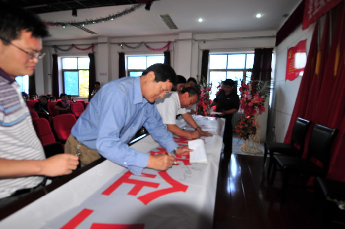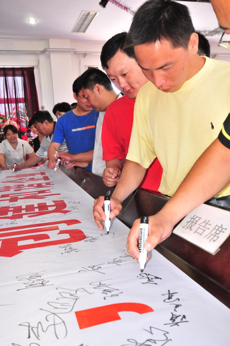 参会人员在“科学发展,安全发展,创建和谐企业,从我做起”条幅上签字